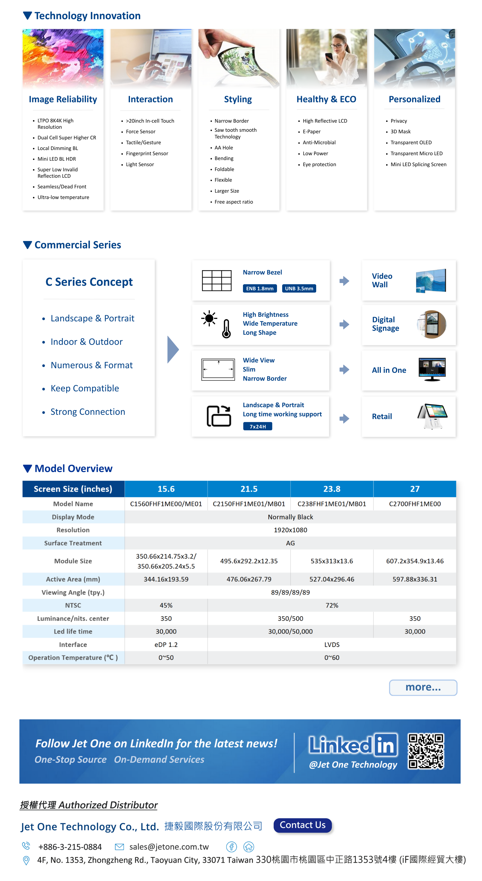 Tianma's establishment of the Gen 8.6 production line in Xiamen marks a significant strategic expansion in the commercial display sector. The newly developed Commercial C-Series is precisely engineered to meet the diverse demands of POS systems, self-service terminals, and professional monitors. By offering a comprehensive range of solutions—from small to large-scale displays—Tianma provides fully customized product portfolios that enhance application flexibility and coverage, consistently delivering exceptional value to our customers.